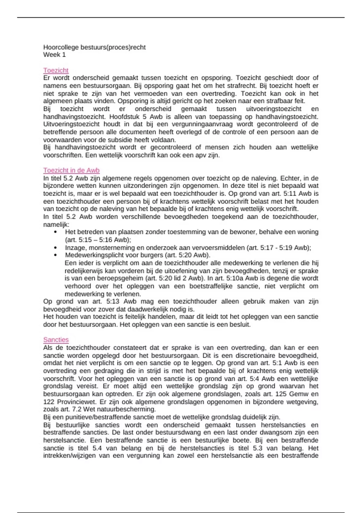 Het houden van toezicht is feitelijk handelen, maar dit leidt tot het opleggen van een sanctie