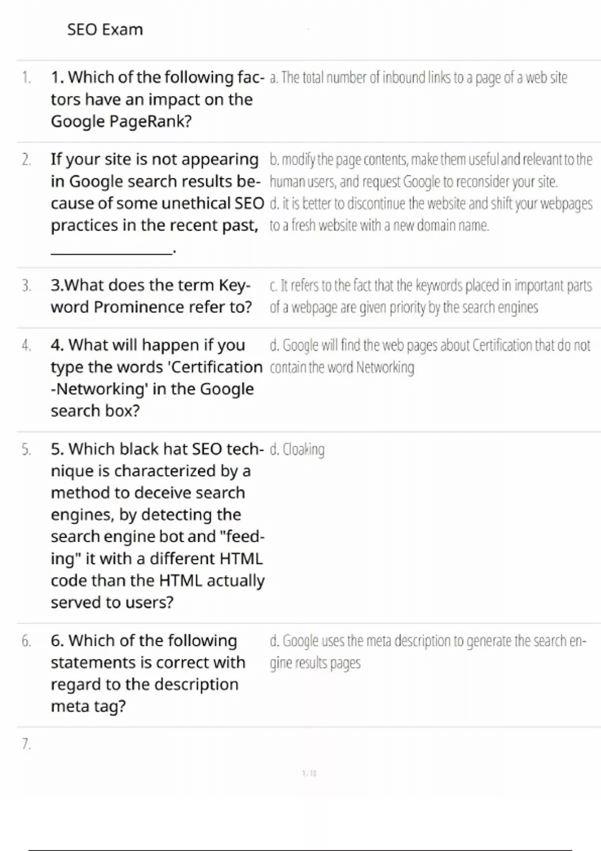 free seo exam practice questions