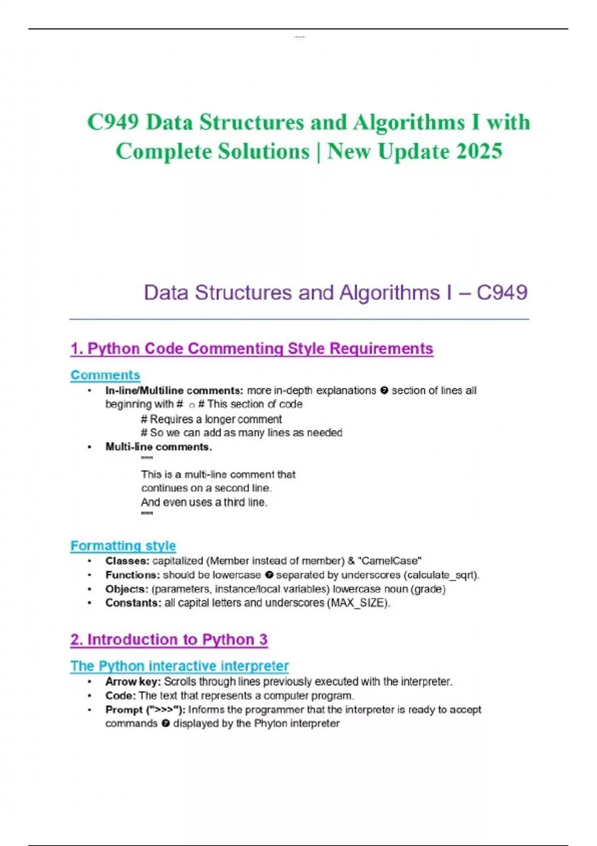 C949 Data Structures and Algorithms I with Complete Solutions | New Update 2025