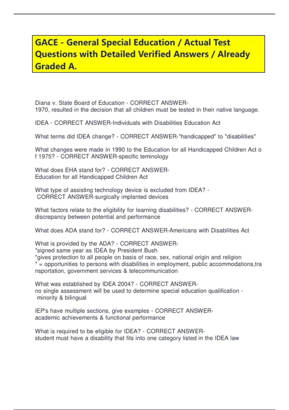 GACE - General Special Education / Actual Test Questions with Detailed Verified Answers
