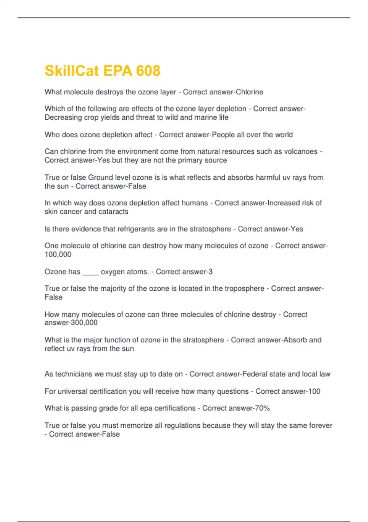 What is passing grade for all epa certifications - Correct answer-70%