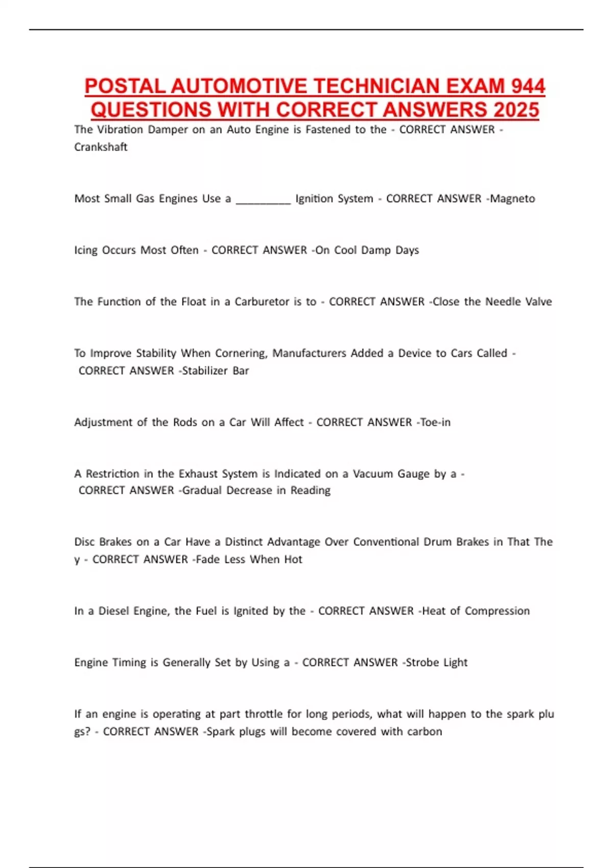 POSTAL AUTOMOTIVE TECHNICIAN EXAM 944