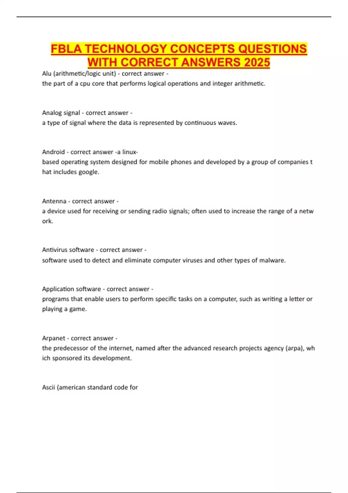 FBLA TECHNOLOGY CONCEPTS QUESTIONS WITH CORRECT ANSWERS 2025