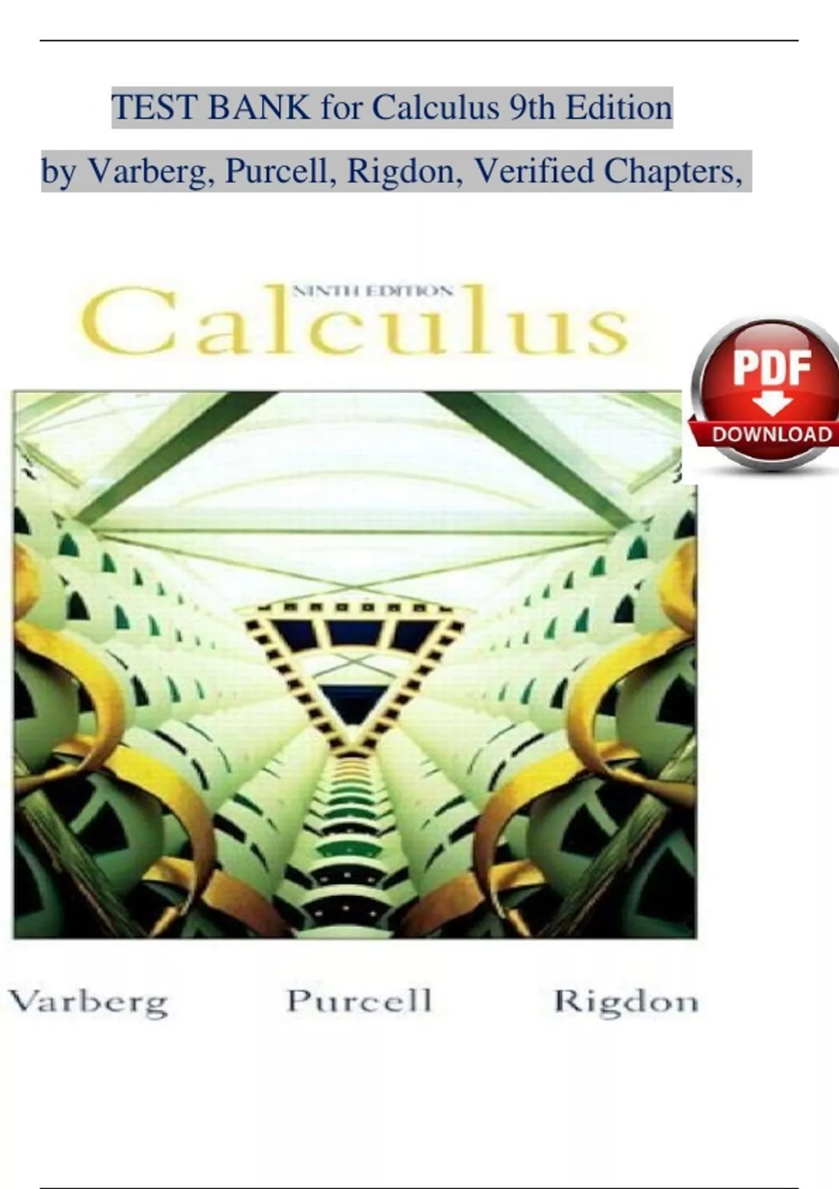 TEST BANK for Calculus 9th Edition by Varberg, Purcell and Rigdon, all Chapters covered ISBN: 9780131429246