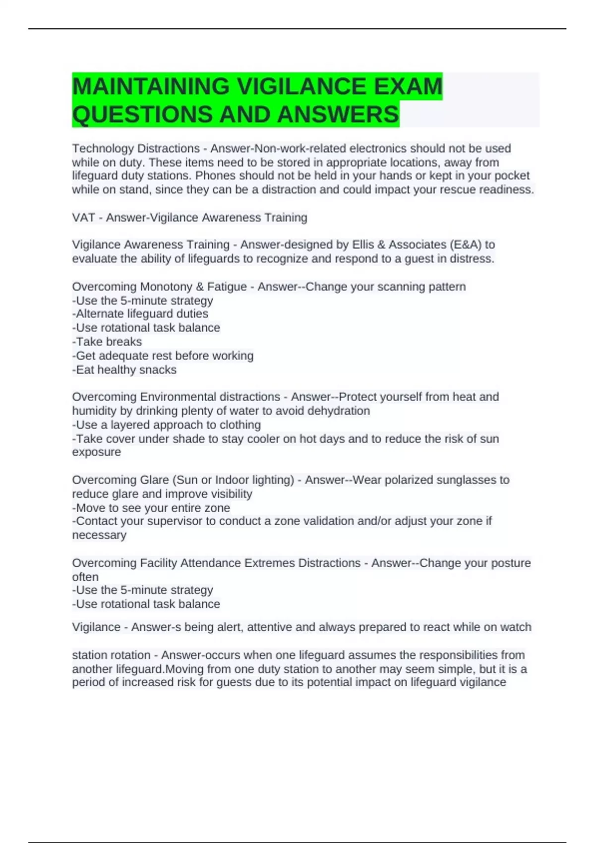 Vigilance - Answer-s being alert, attentive and always prepared to react while on watch
