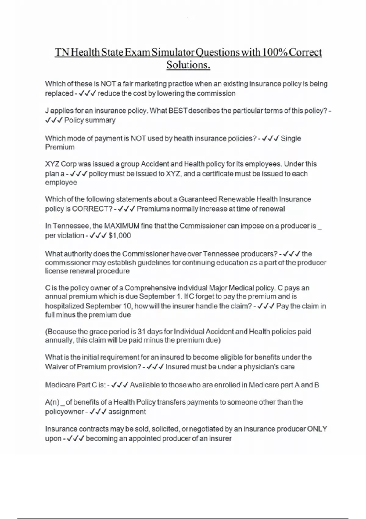 TN Health State Exam Simulator Questions with 100% Correct Solutions.