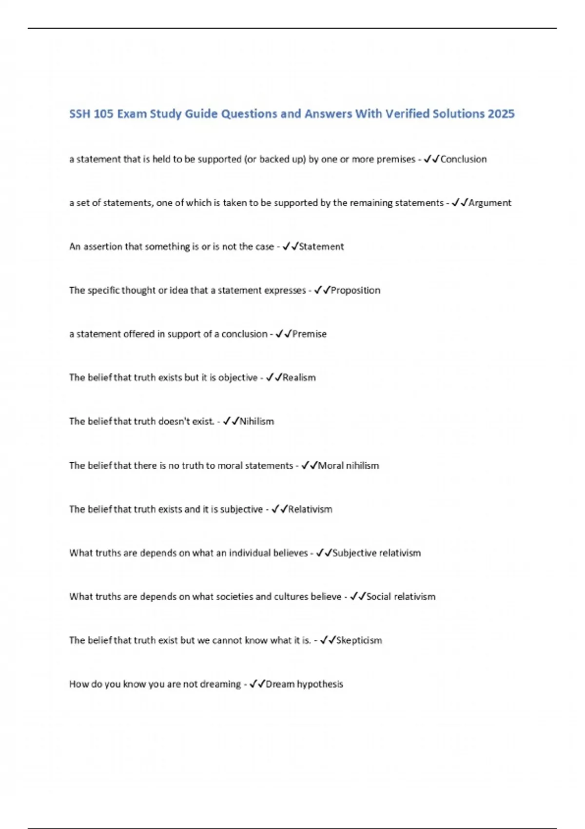 SSH 105 Exam Study Guide Questions and Answers With Verified Solutions 2025