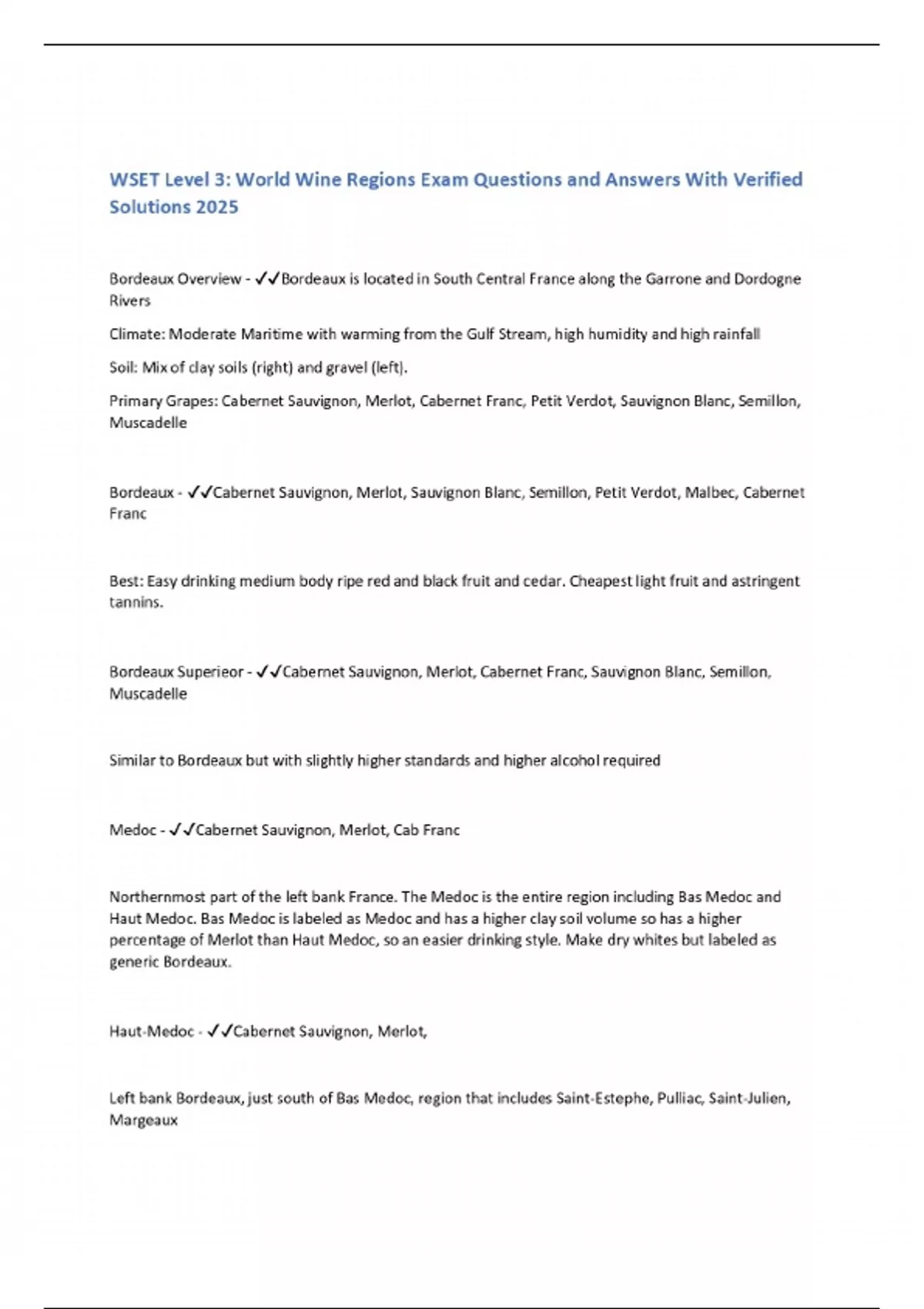 WSET Level 3: World Wine Regions Exam Questions and Answers With Verified Solutions 2025