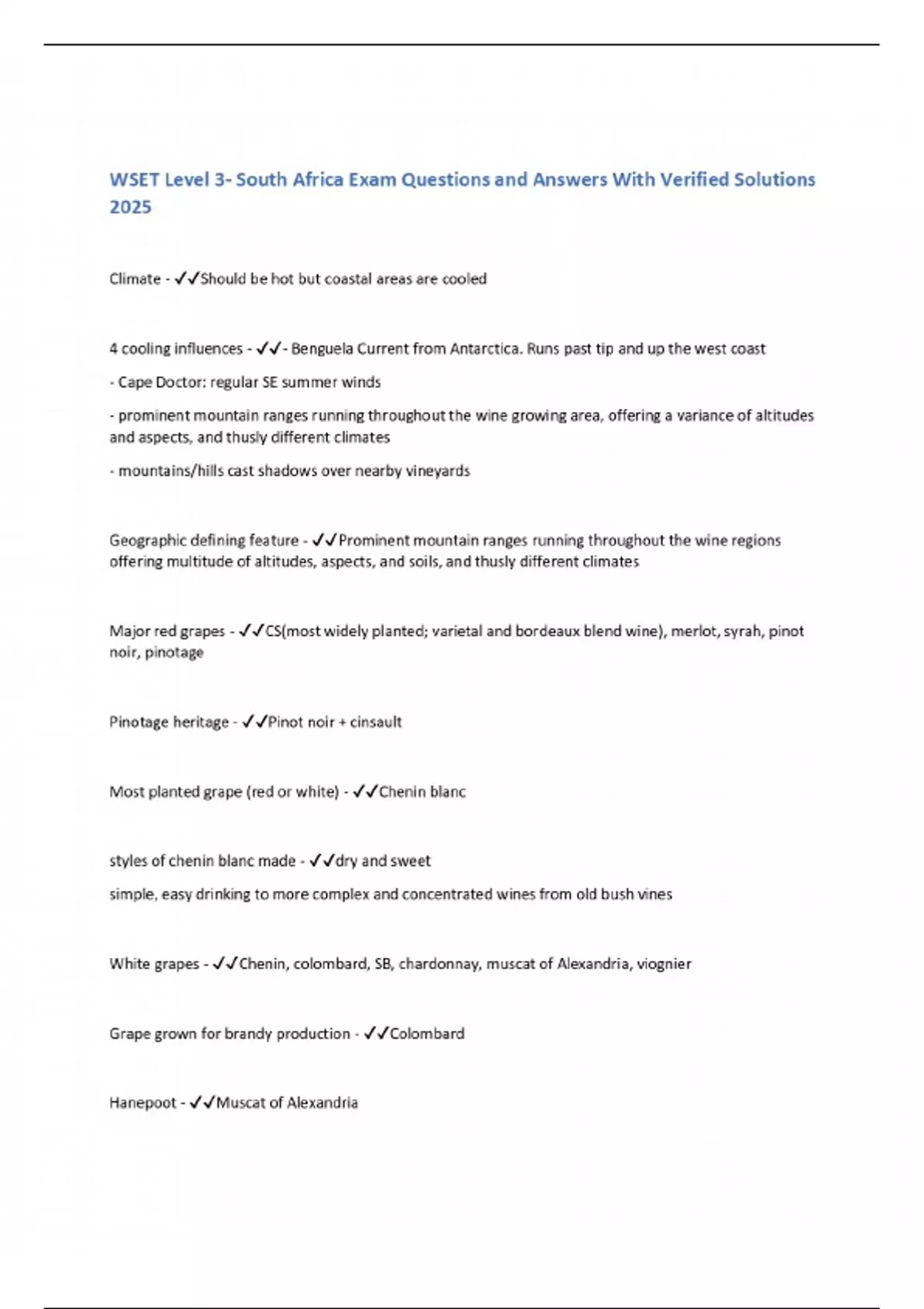 WSET Level 3- South Africa Exam Questions and Answers With Verified Solutions 2025