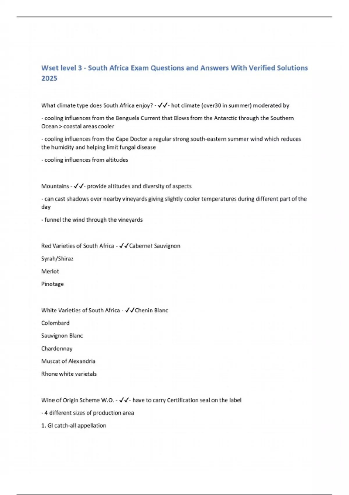 Wset level 3 - South Africa Exam Questions and Answers With Verified Solutions 2025
