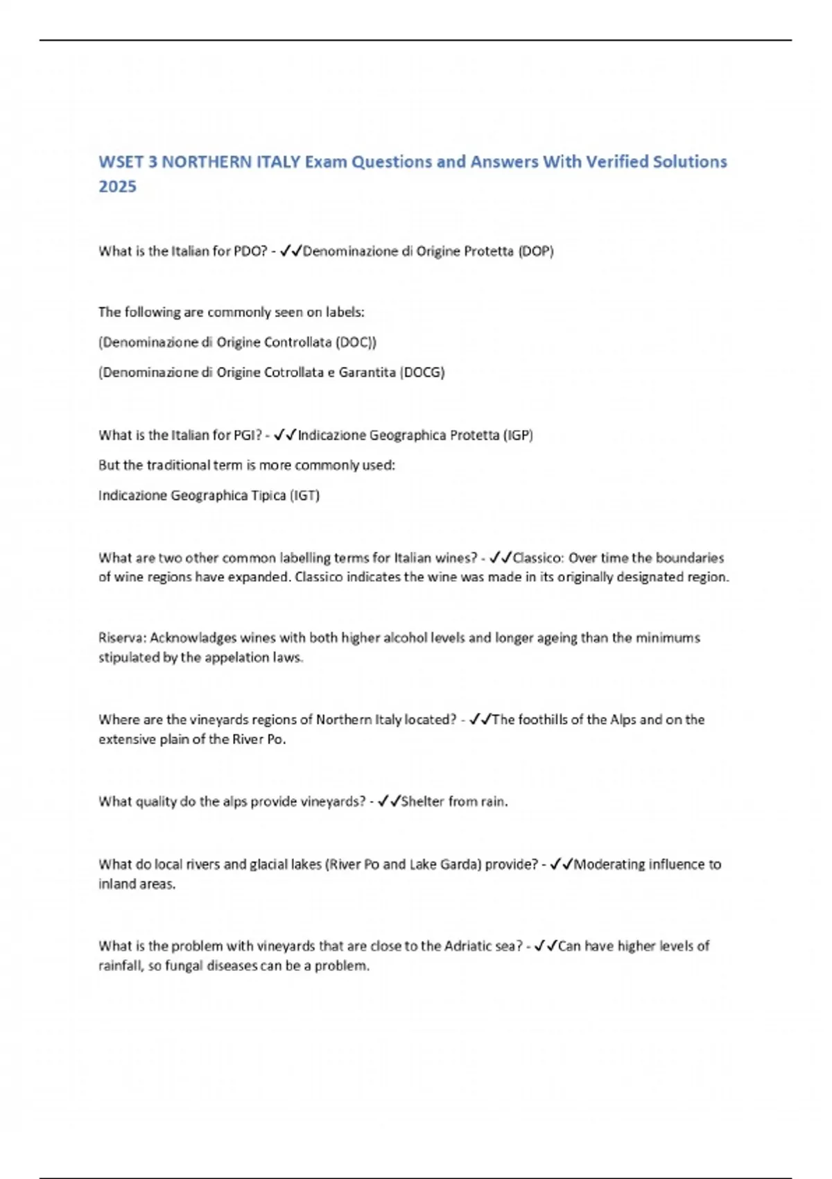 WSET 3 NORTHERN ITALY Exam Questions and Answers With Verified Solutions 2025