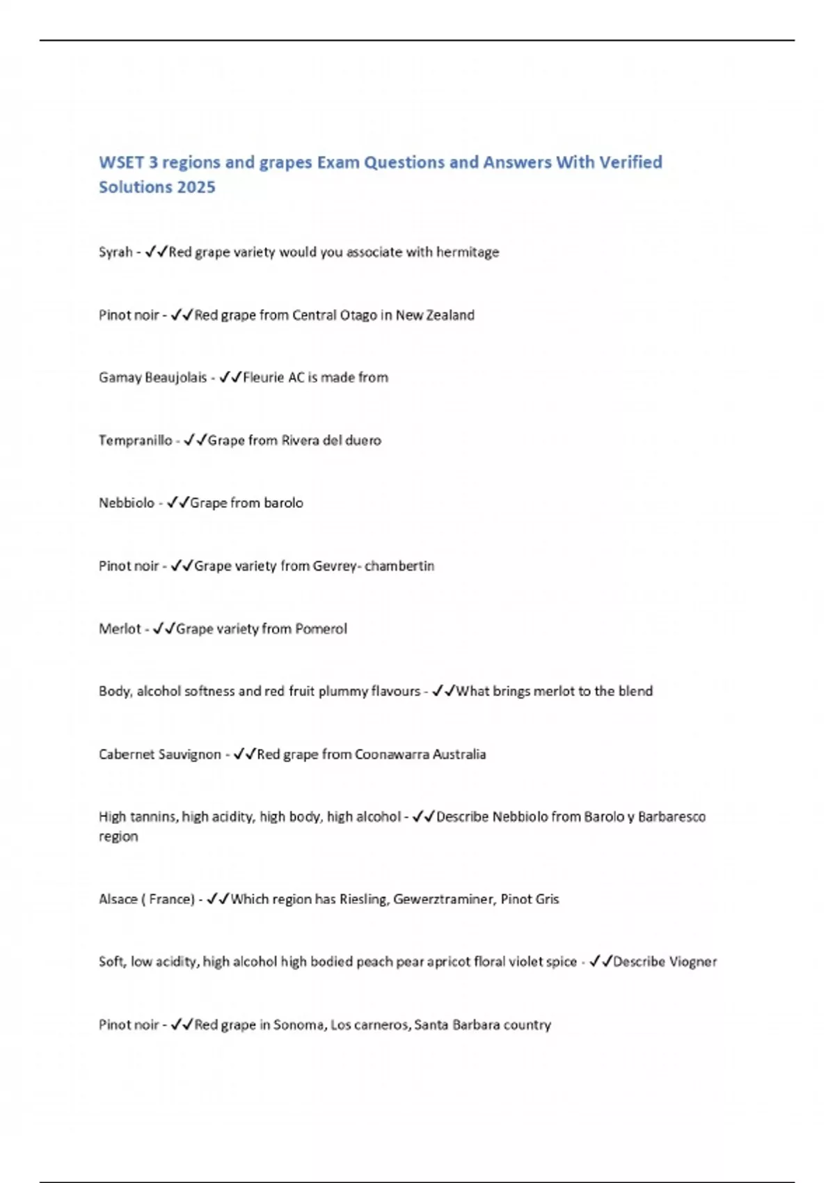 WSET 3 regions and grapes Exam Questions and Answers With Verified Solutions 2025