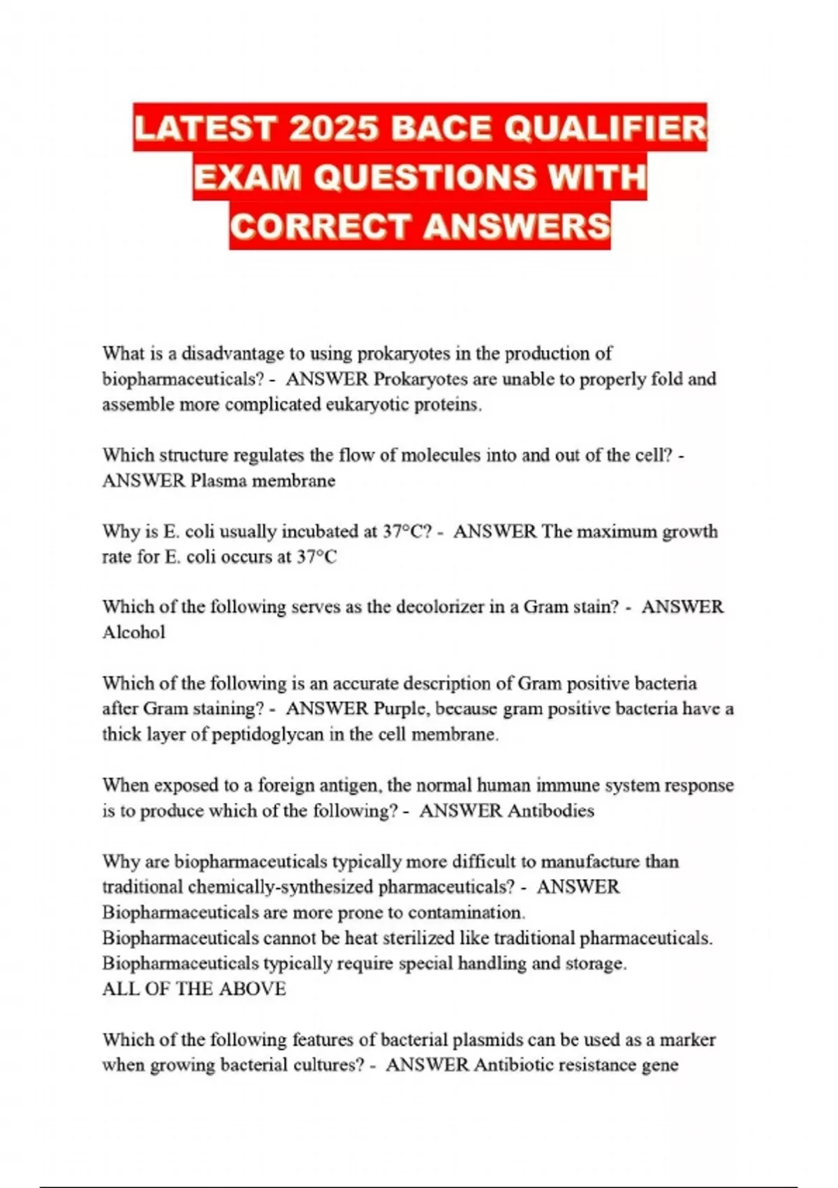 LATEST 2025 BACE QUALIFIER EXAM QUESTIONS WITH CORRECT ANSWERS....