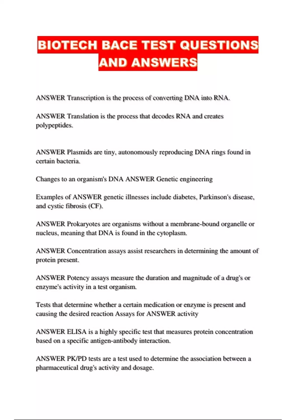 BIOTECH BACE TEST QUESTIONS AND ANSWERS....