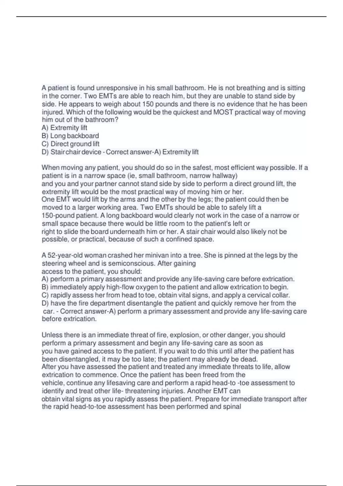 car. - Correct answer-A) perform a primary assessment and provide any life-saving care