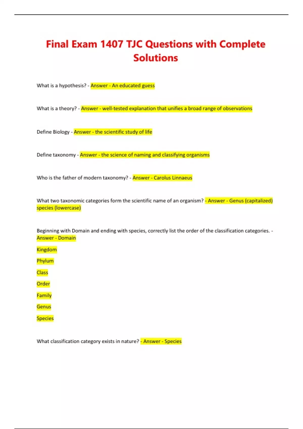 What classification category exists in nature? - Answer - Species