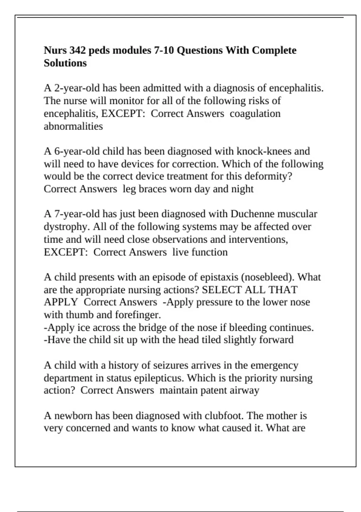 Correct Answers leg braces worn day and night