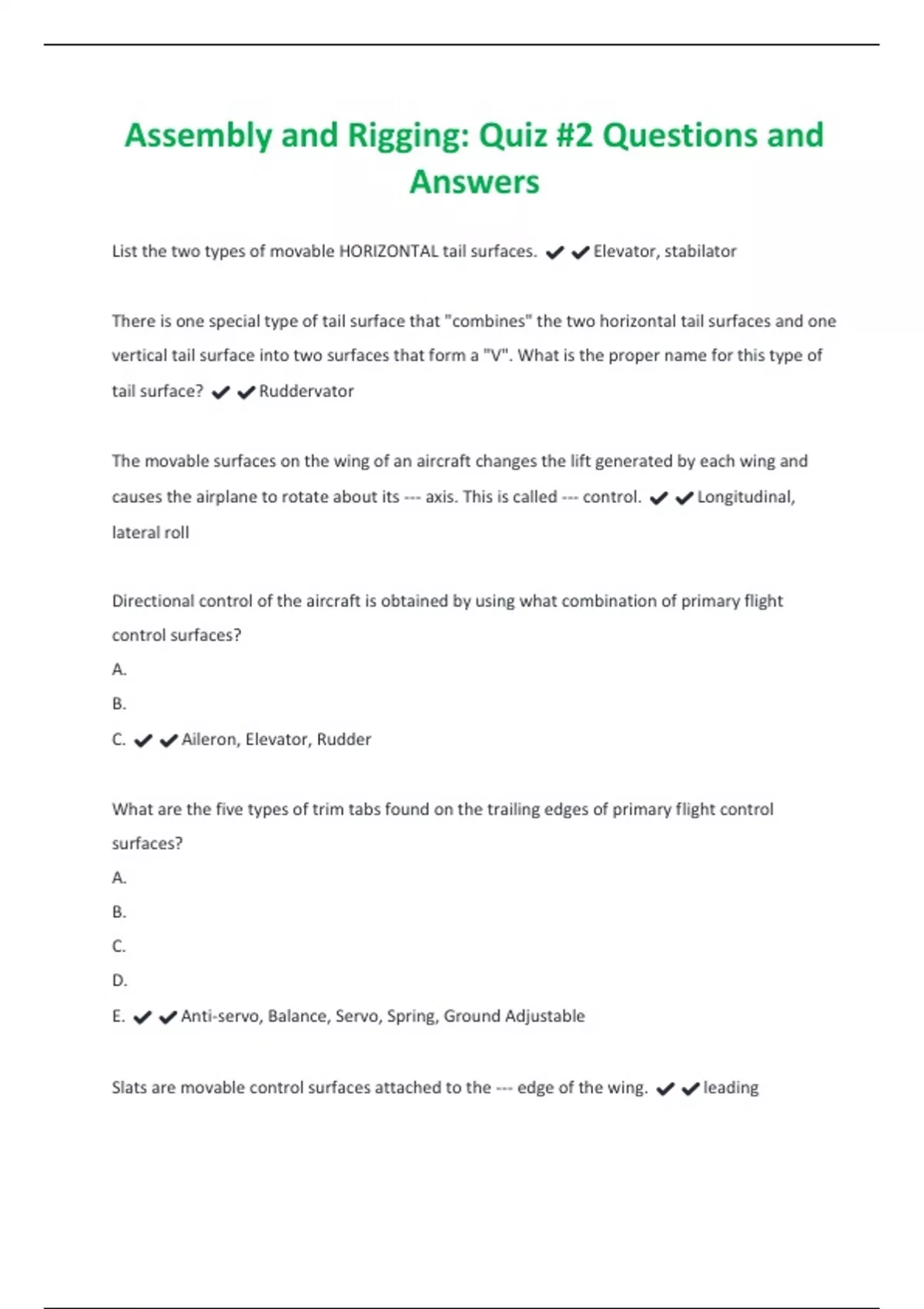 Assembly and Rigging: Quiz #2 Questions and Answers