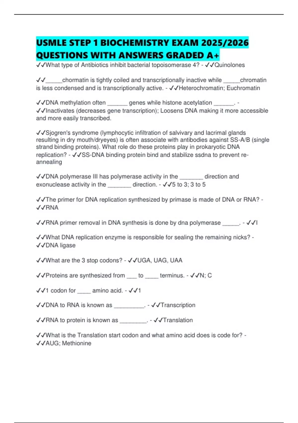 USMLE STEP 1 BIOCHEMISTRY EXAM 2025/2026 QUESTIONS WITH ANSWERS GRADED A+