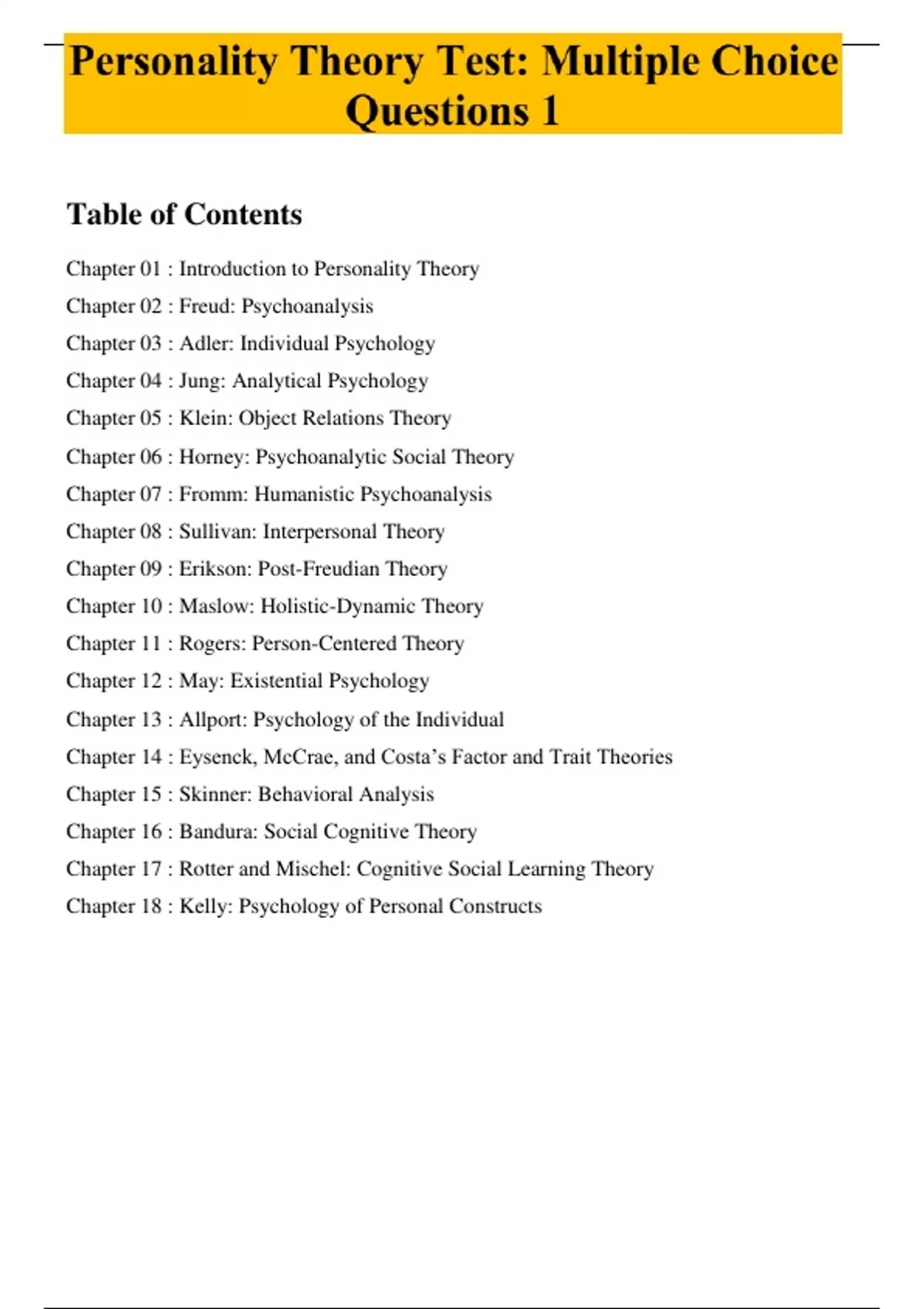 Chapter 01 : Introduction to Personality Theory