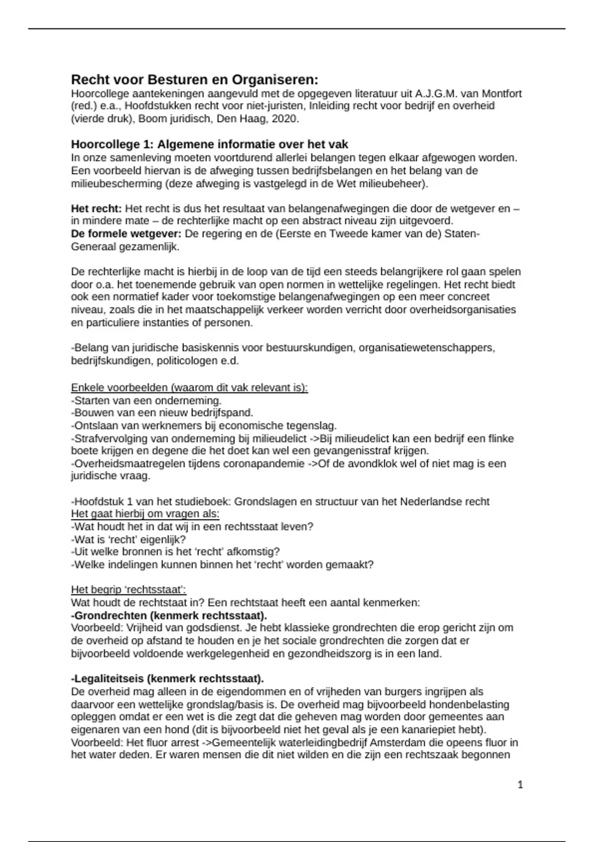 Hoorcollege aantekeningen aangevuld met de opgegeven literatuur uit A.J.G.M. van Montfort