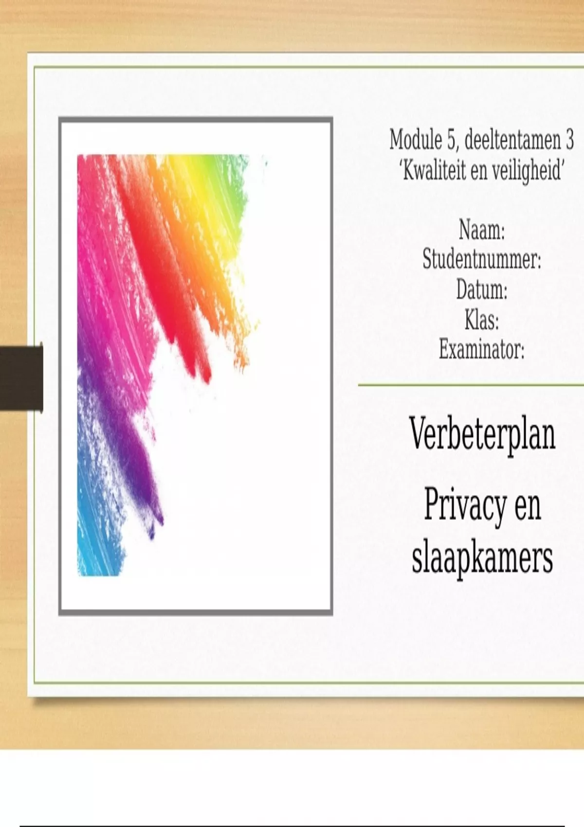 PRESENTATIE (8.4) Module 5, deeltentamen 3: Verbeterplan / Kwaliteit & Veiligheid