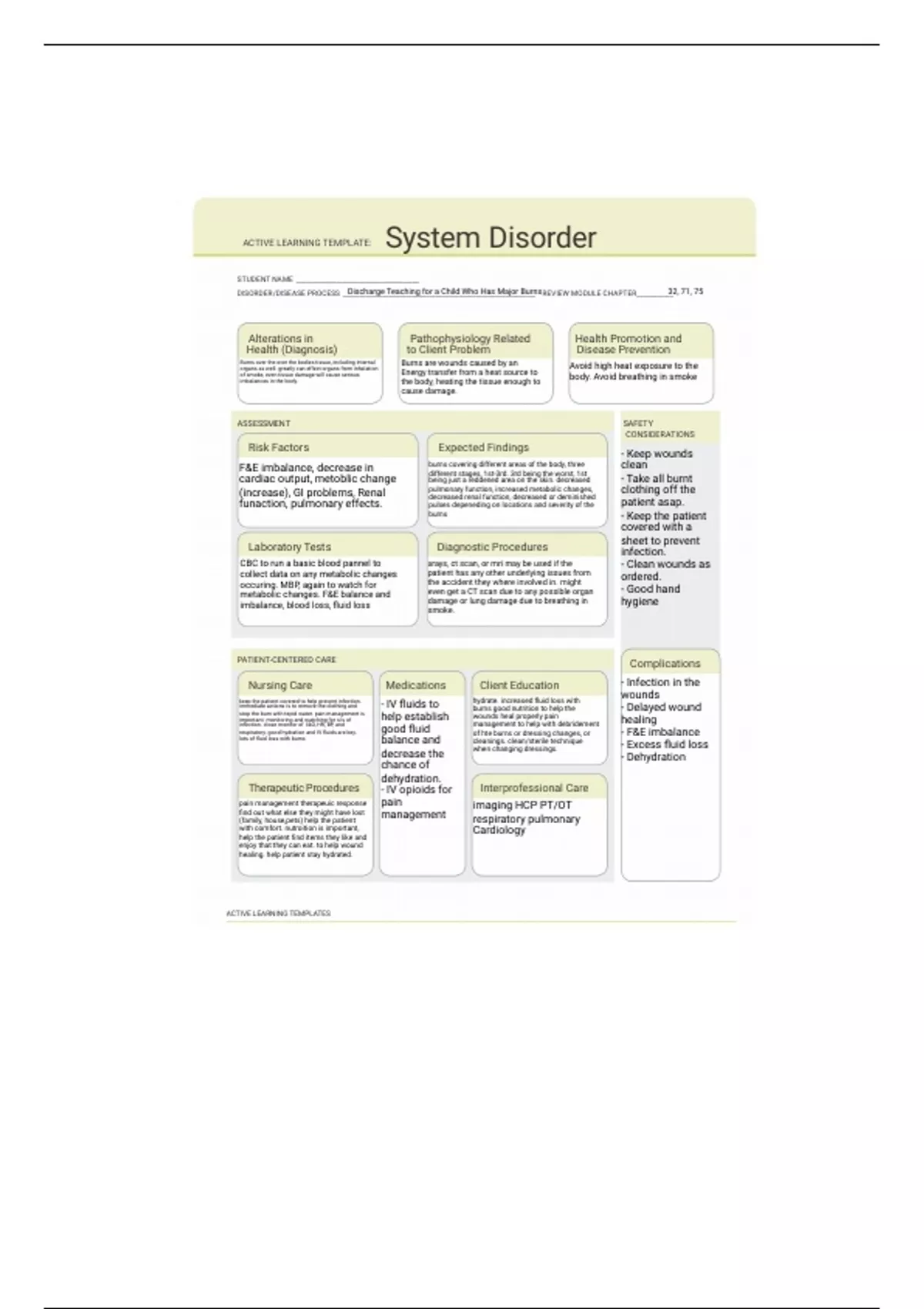 This is a comprehensive and detailed ATI template on;Discharge Teaching for a Child Who Has Major Burns An Essential Study Resource just for YOU!!