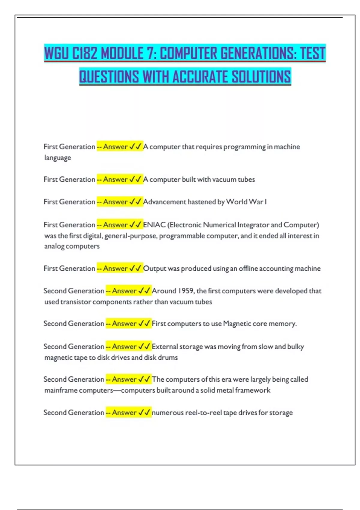 WGU C182 MODULE 7: COMPUTER GENERATIONS: TEST