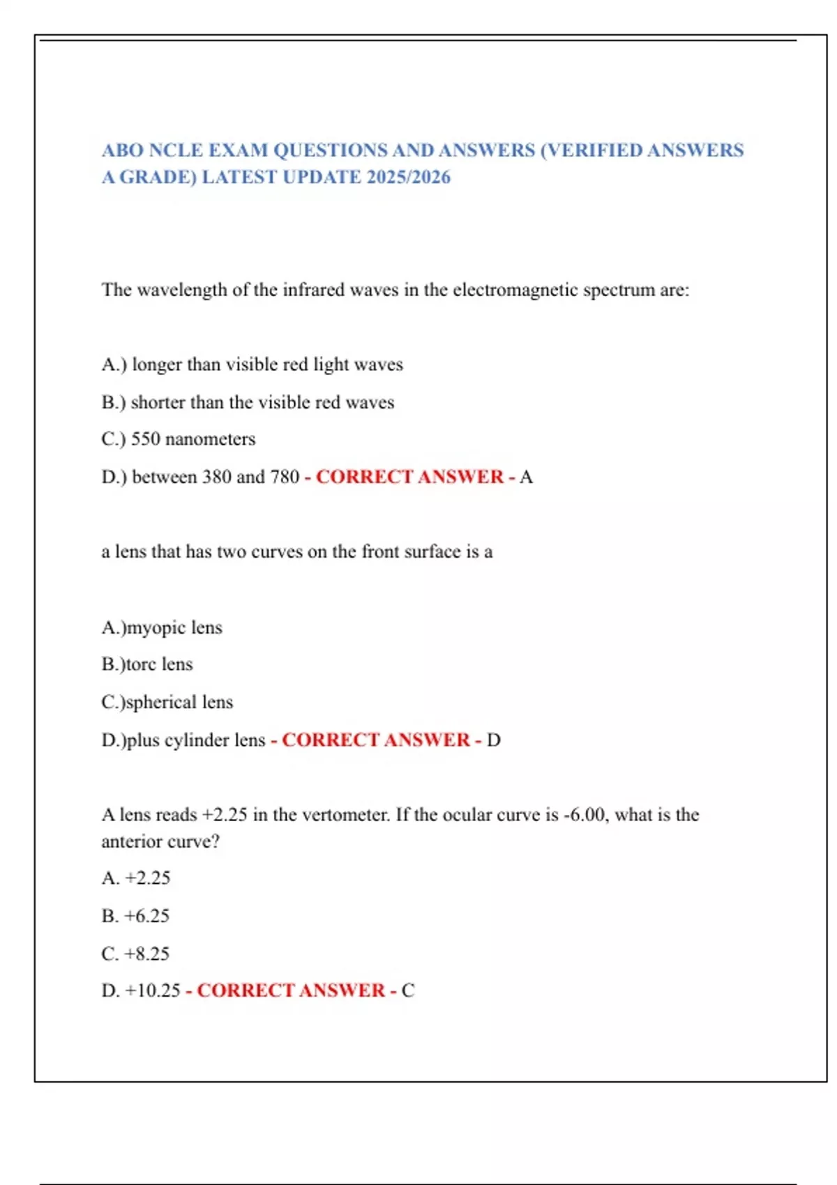 ABO NCLE EXAM QUESTIONS AND ANSWERS (VERIFIED ANSWERS