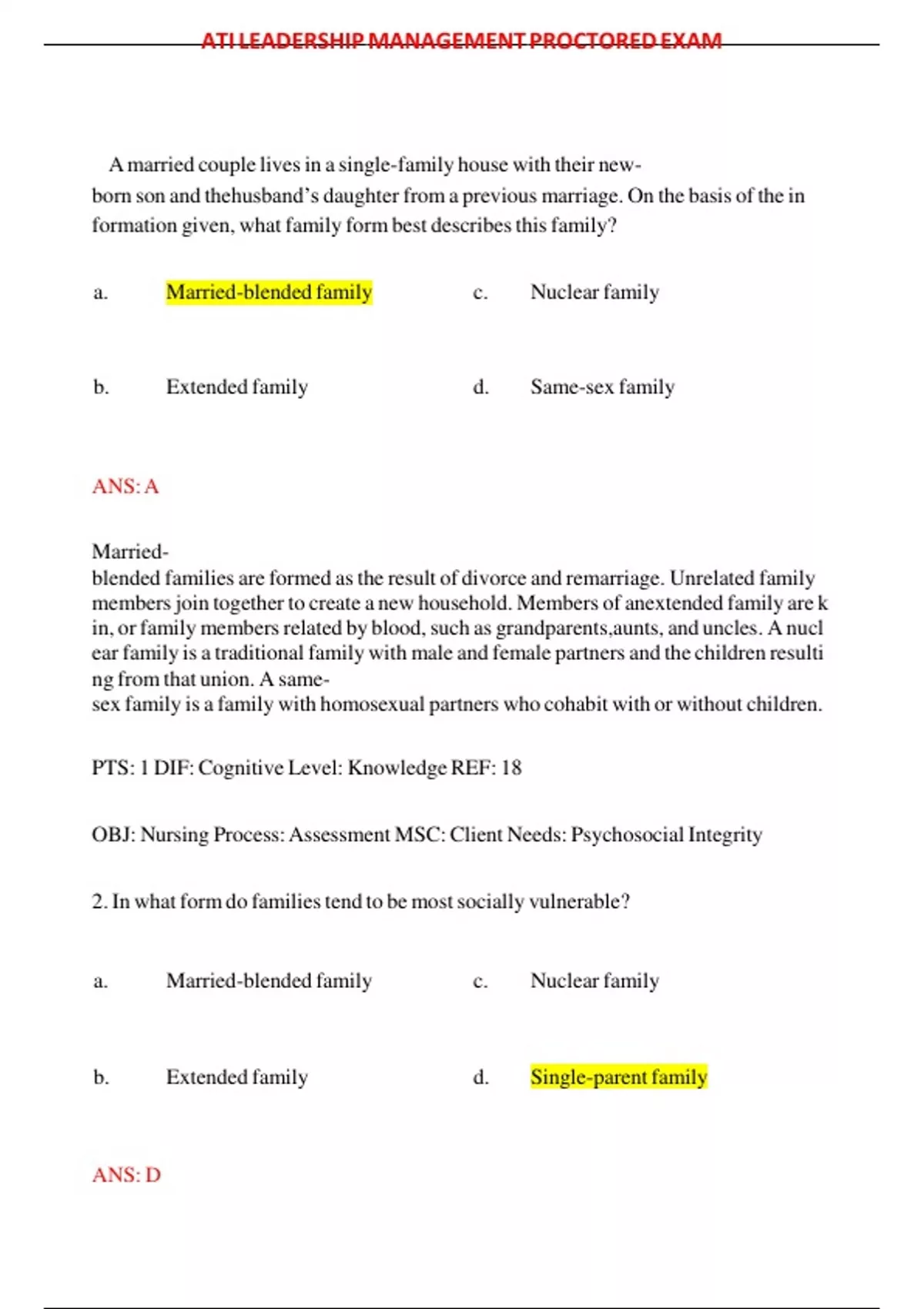 ATI LEADERSHIP MANAGEMENT PROCTORED EXAM