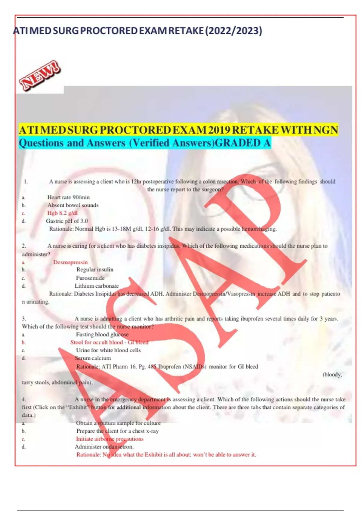 ATI MED SURG PROCTORED EXAM 2019 RETAKE WITH NGN