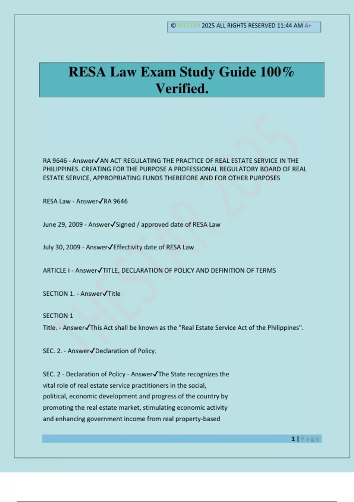 July 30, 2009 - Answer✔Effectivity date of RESA Law