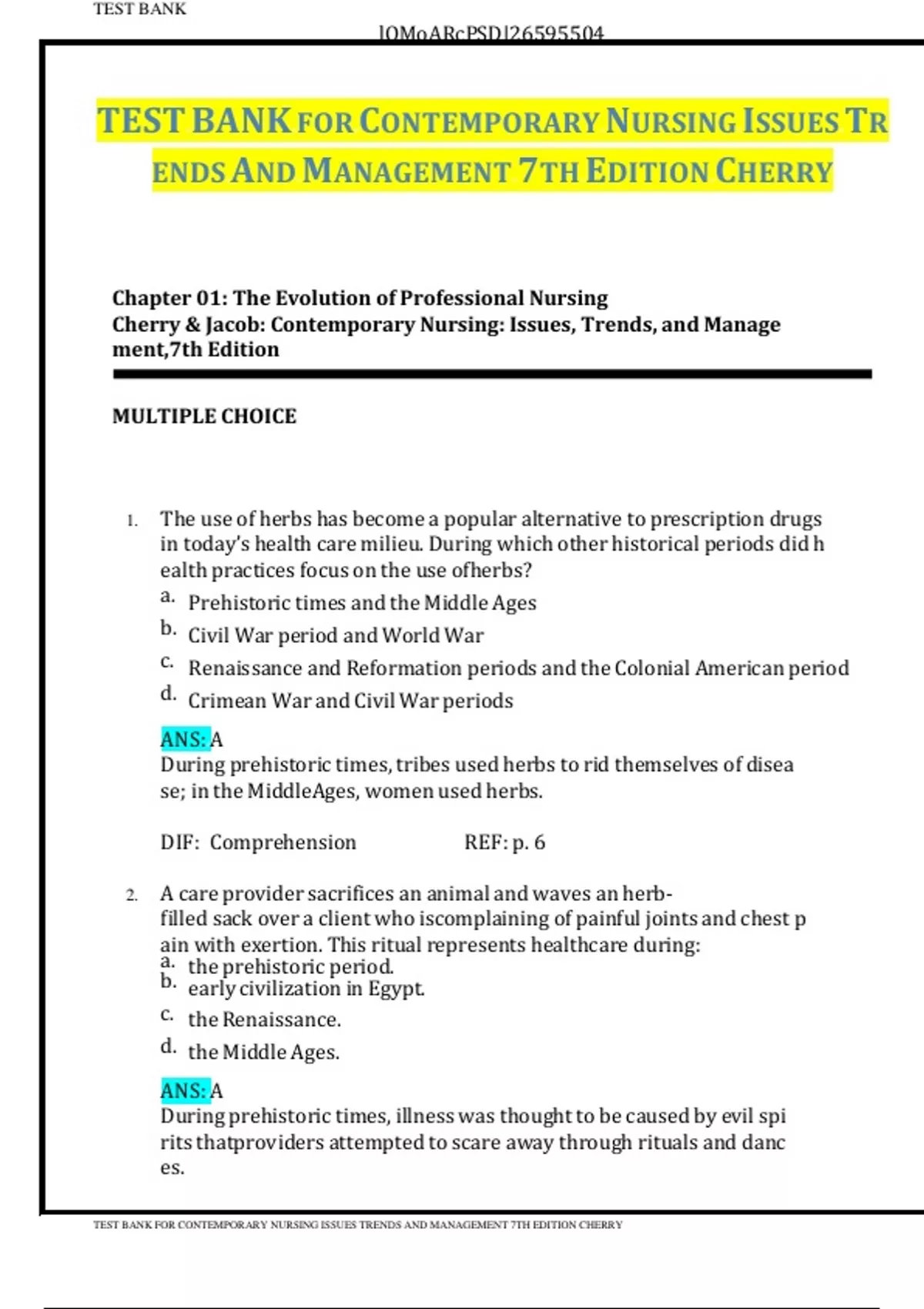 TESTdBANKdFORdCONTEMPORARYdNURSINGdISSUESdTRENDSdANDdMANAGEMENTd7THdEDITIONdCHERRY
