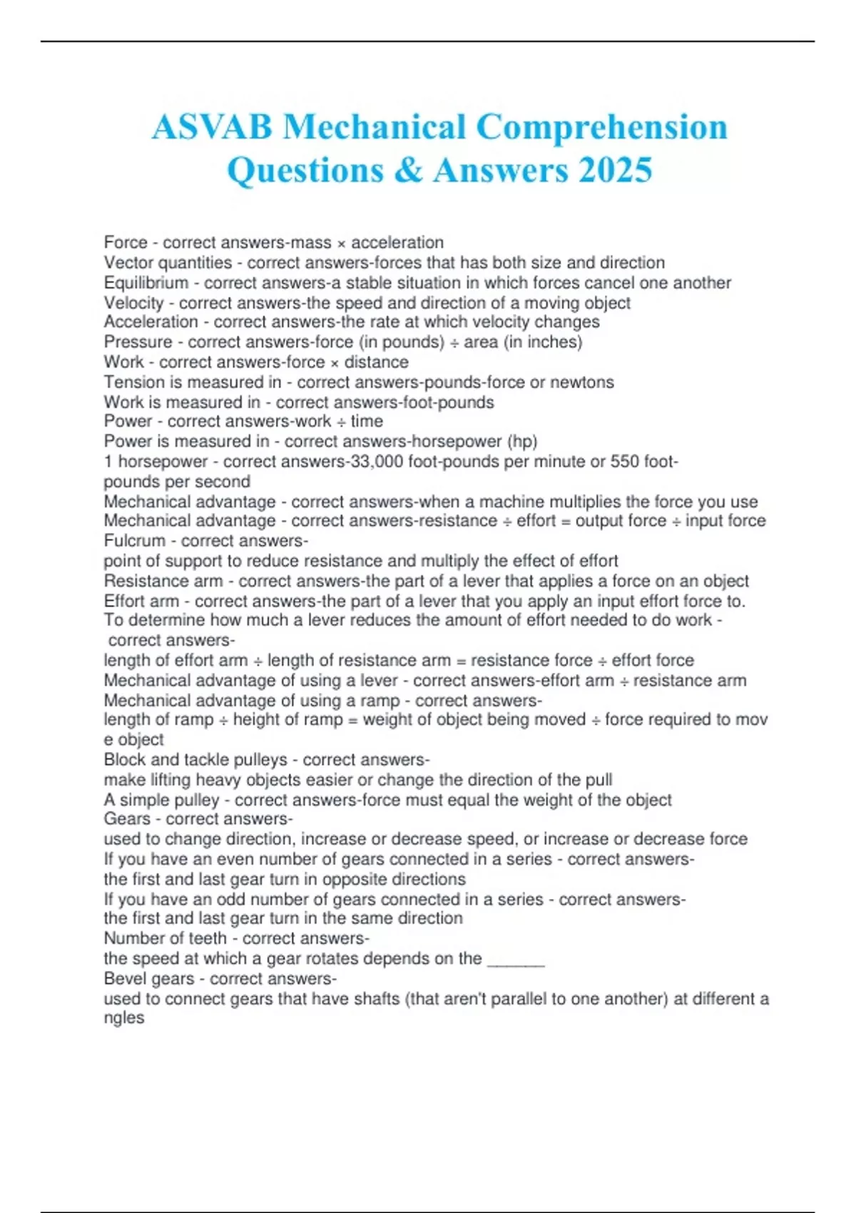 GearsA-AcorrectAanswers-