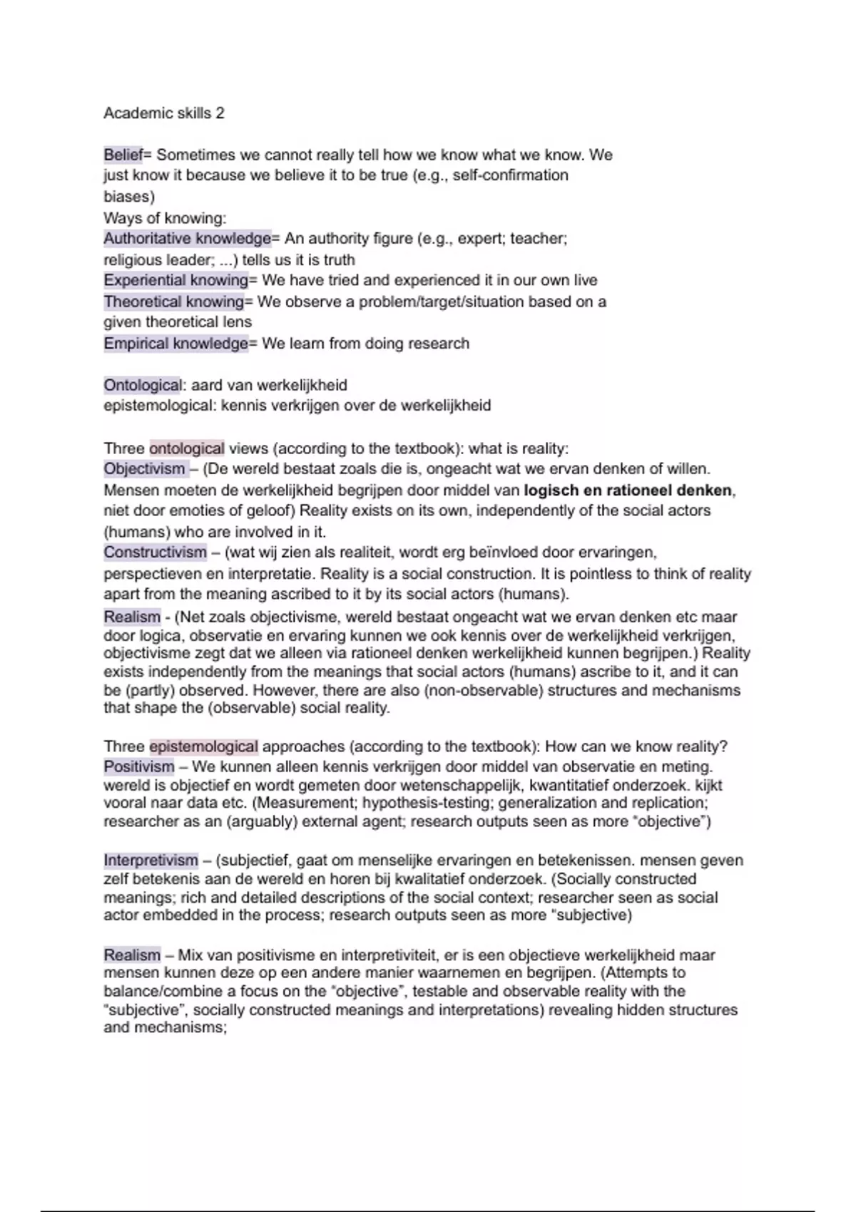 Samenvatting van het vak 'academic skills 2' in jaar 1 van communicatie en informatie wetenschappen op de rug. Omdat mijn moedertaal Nederlands is, is de samenvatting deels engels en deels nederlands om het zo goed mogelijk te begrijpen. Ik heb met deze samenvatting een 7 gehaald.