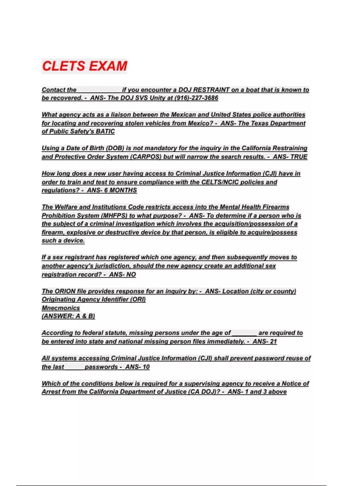 CLETS EXAM