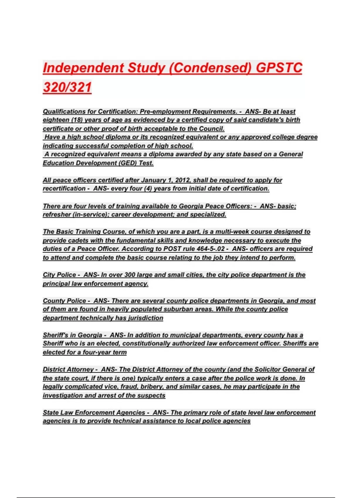 Independent Study (Condensed) GPSTC