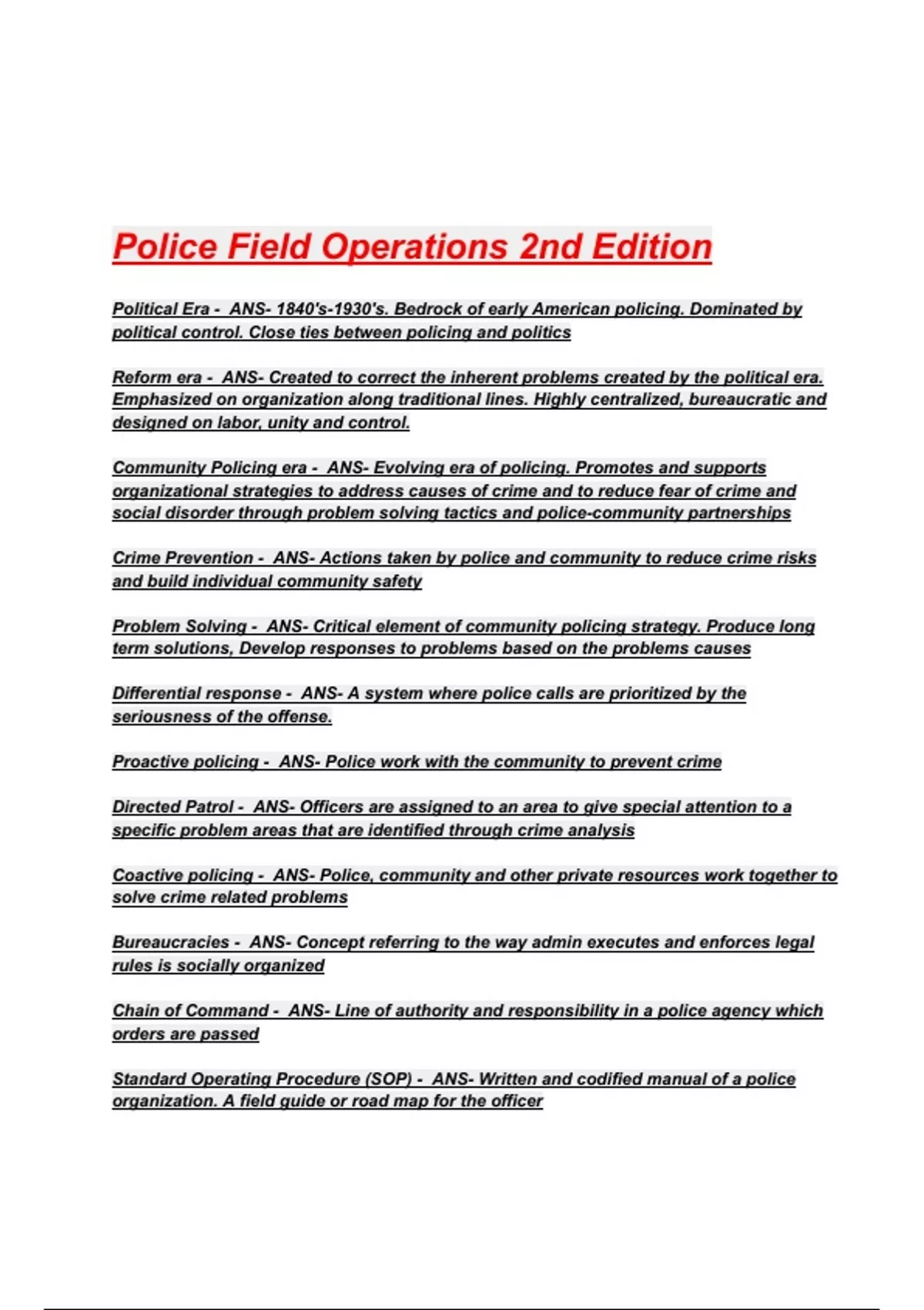 Police Field Operations 2nd Edition Exam Questions and Answers 2025/2026( A+ GRADED 100% VERIFIED).