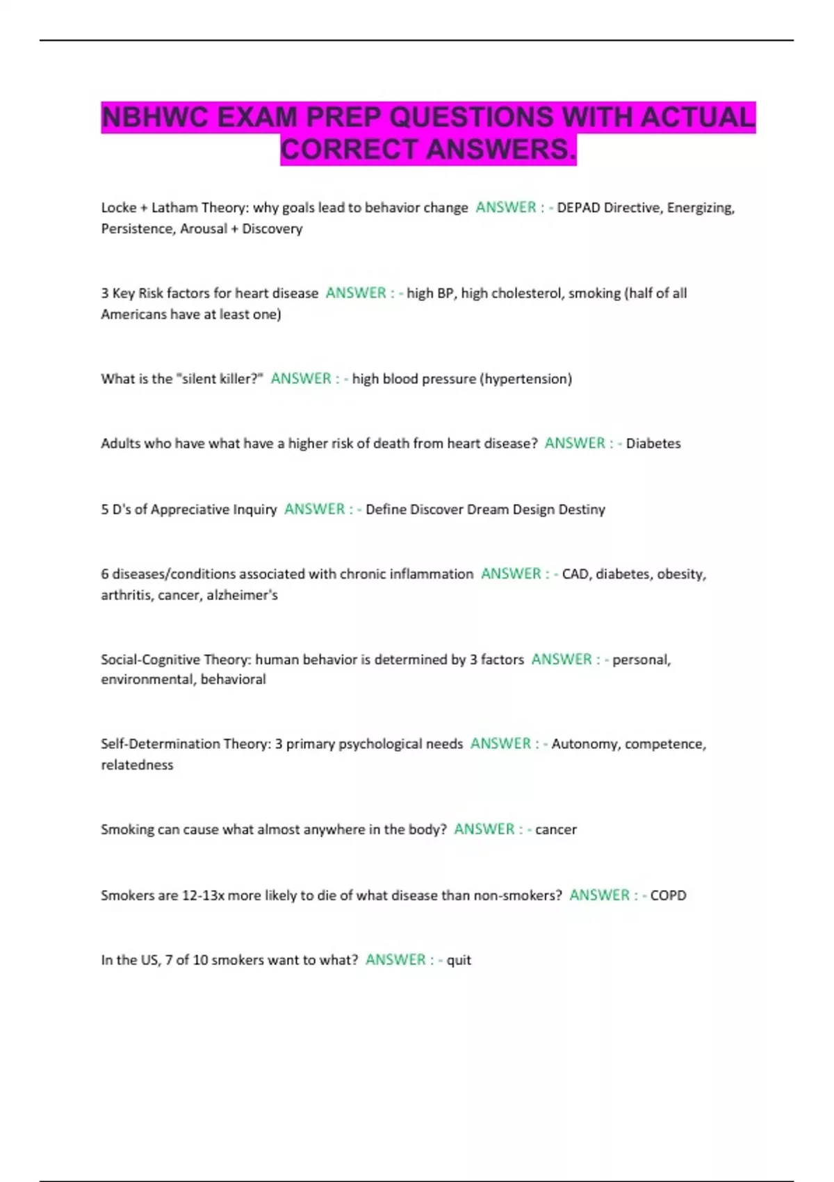 CORRECT ANSWERS.