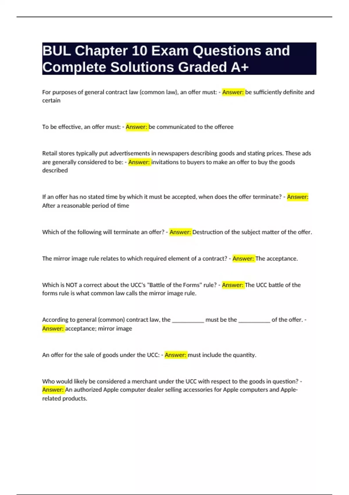 To be effective, an offer must: - Answer: be communicated to the offeree