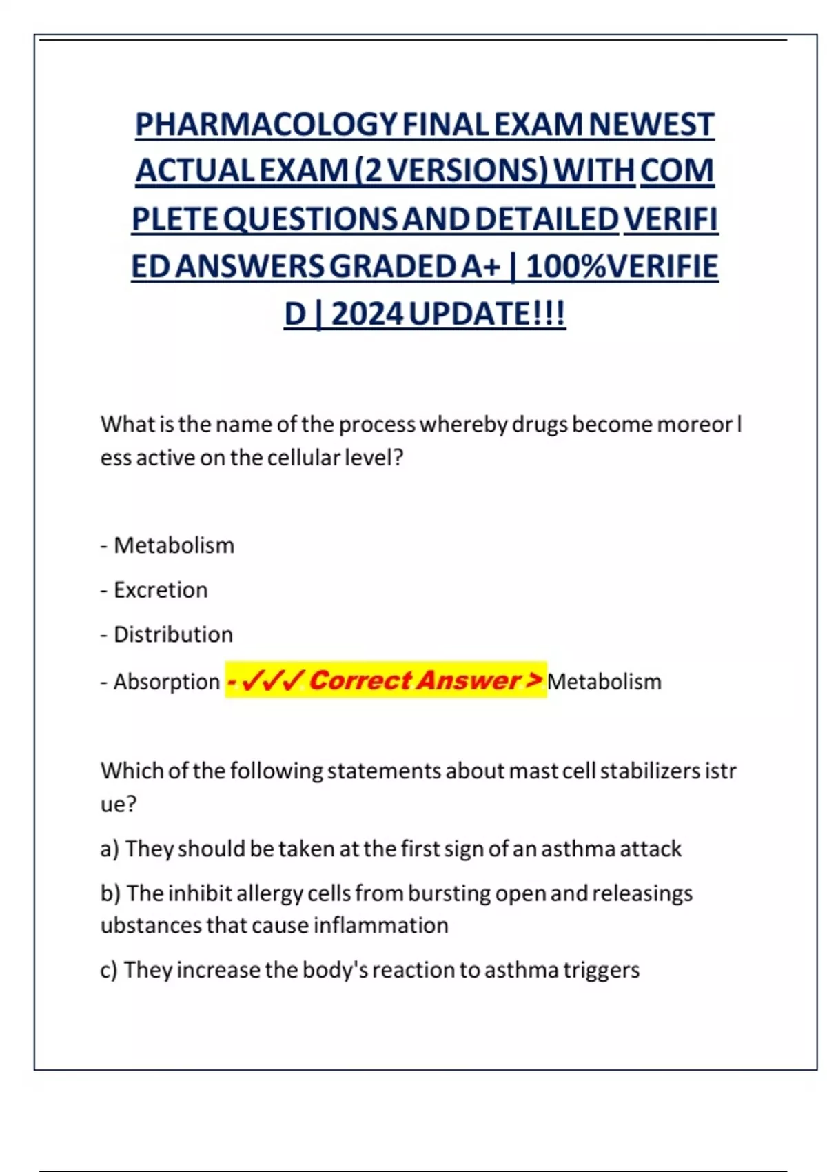 PHARMACOLOGY FINAL EXAM NEWEST b b b