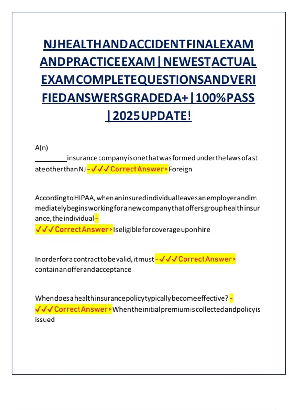 NJ HEALTH AND ACCIDENT FINAL EXAM