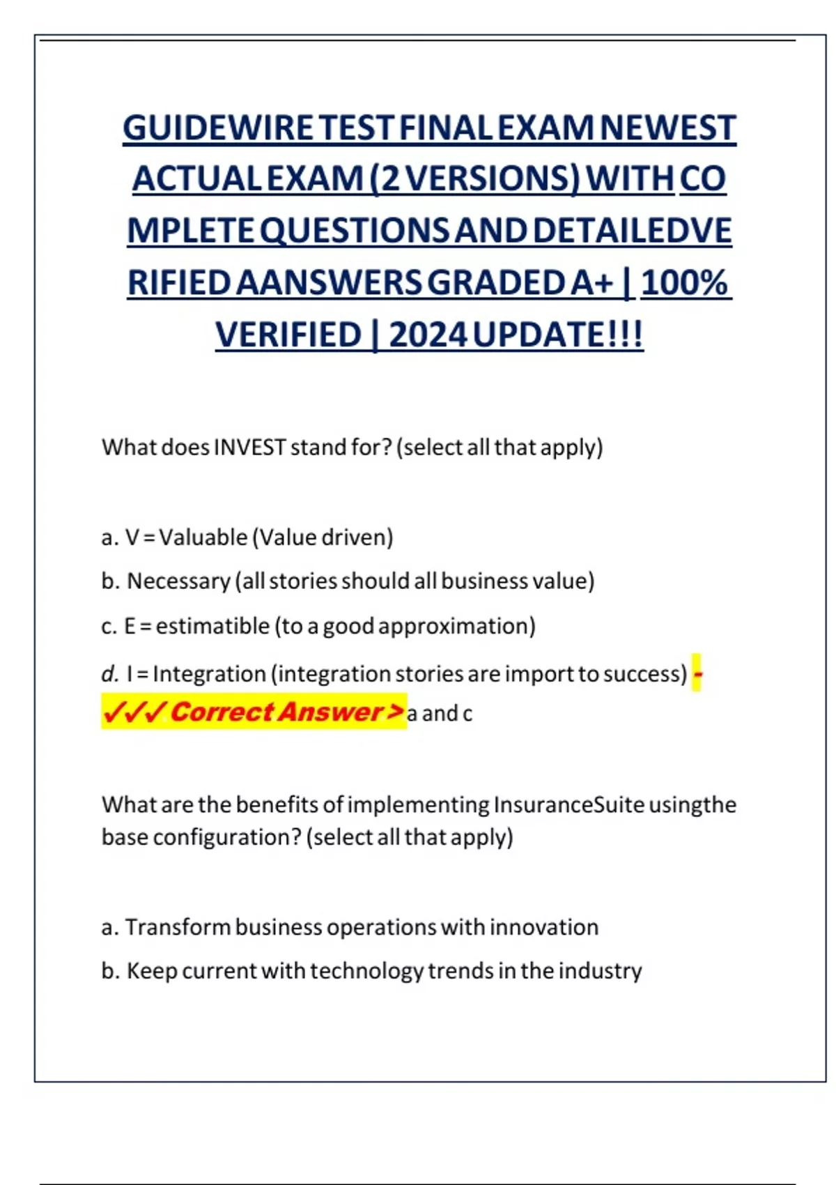 GUIDEWIRE TEST FINAL EXAM NEWEST h h h h