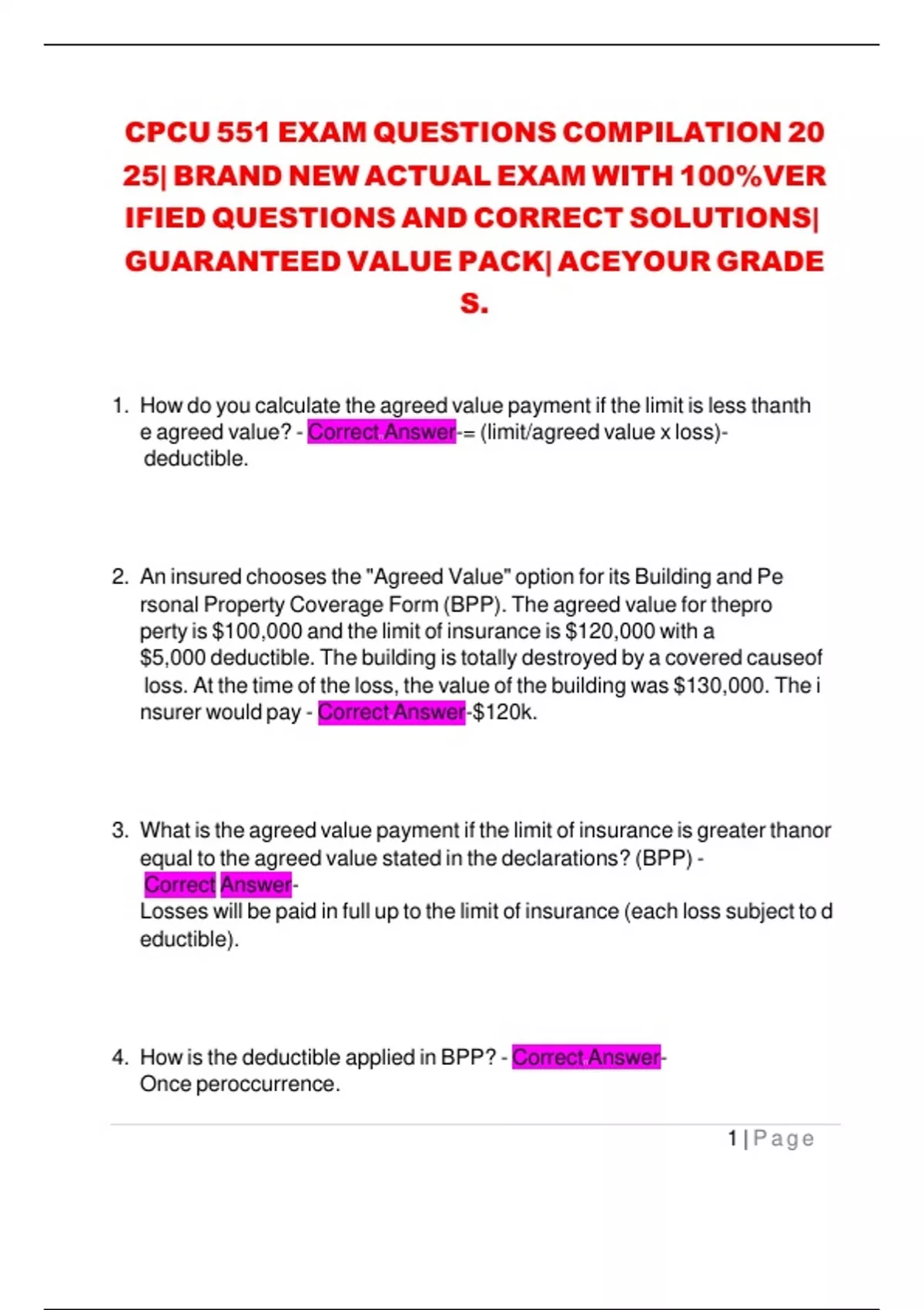 CPCU 551 EXAM QUESTIONS COMPILATION 20