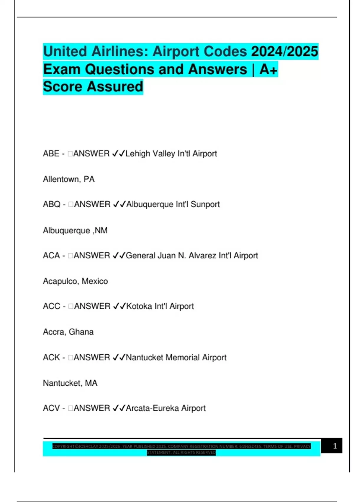 ALB - 🧠ANSWER ✔✔Albany Int'l Airport