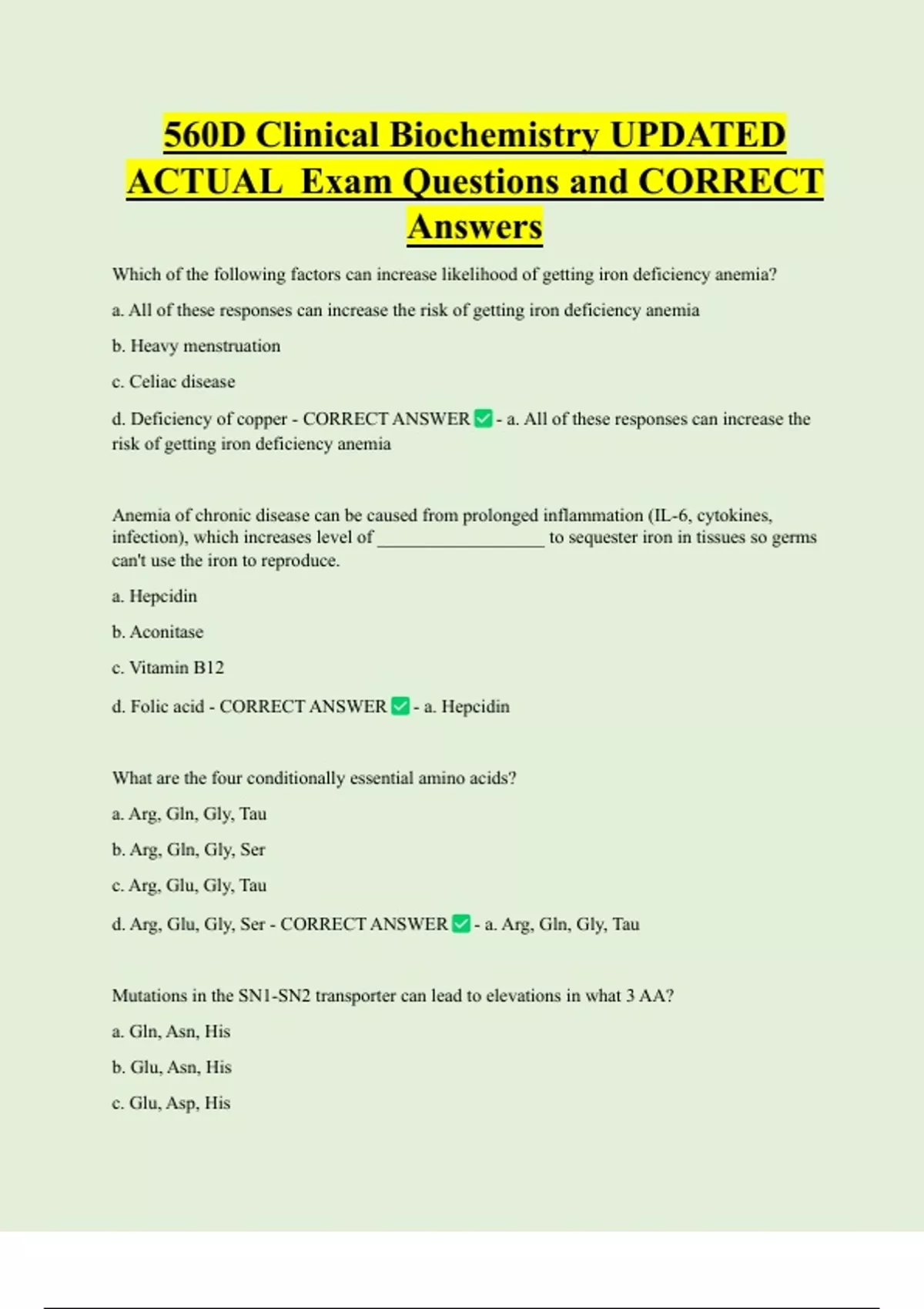 d. Folic acid - CORRECT ANSWER - a. Hepcidin