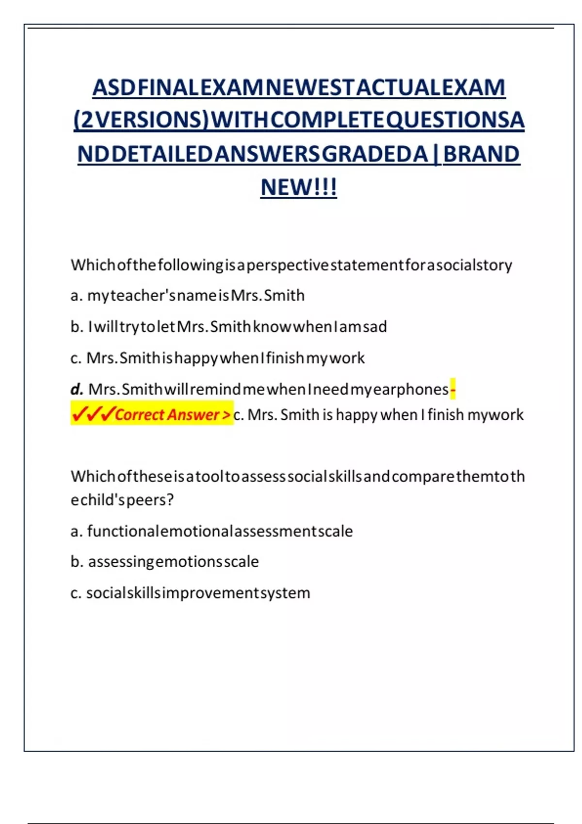 ASD FINAL EXAM NEWEST ACTUAL EXAM j j j j j