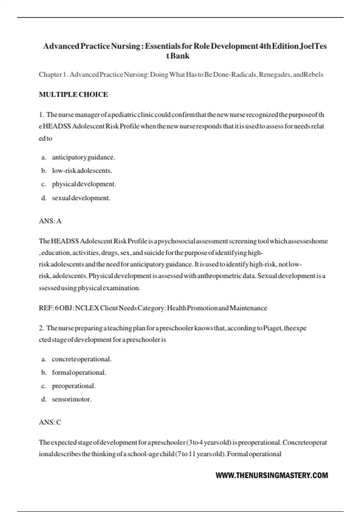 Test Bank for Advanced Practice Nursing profession Essential Knowledge for 3rd Edition Complete Guide Denisco