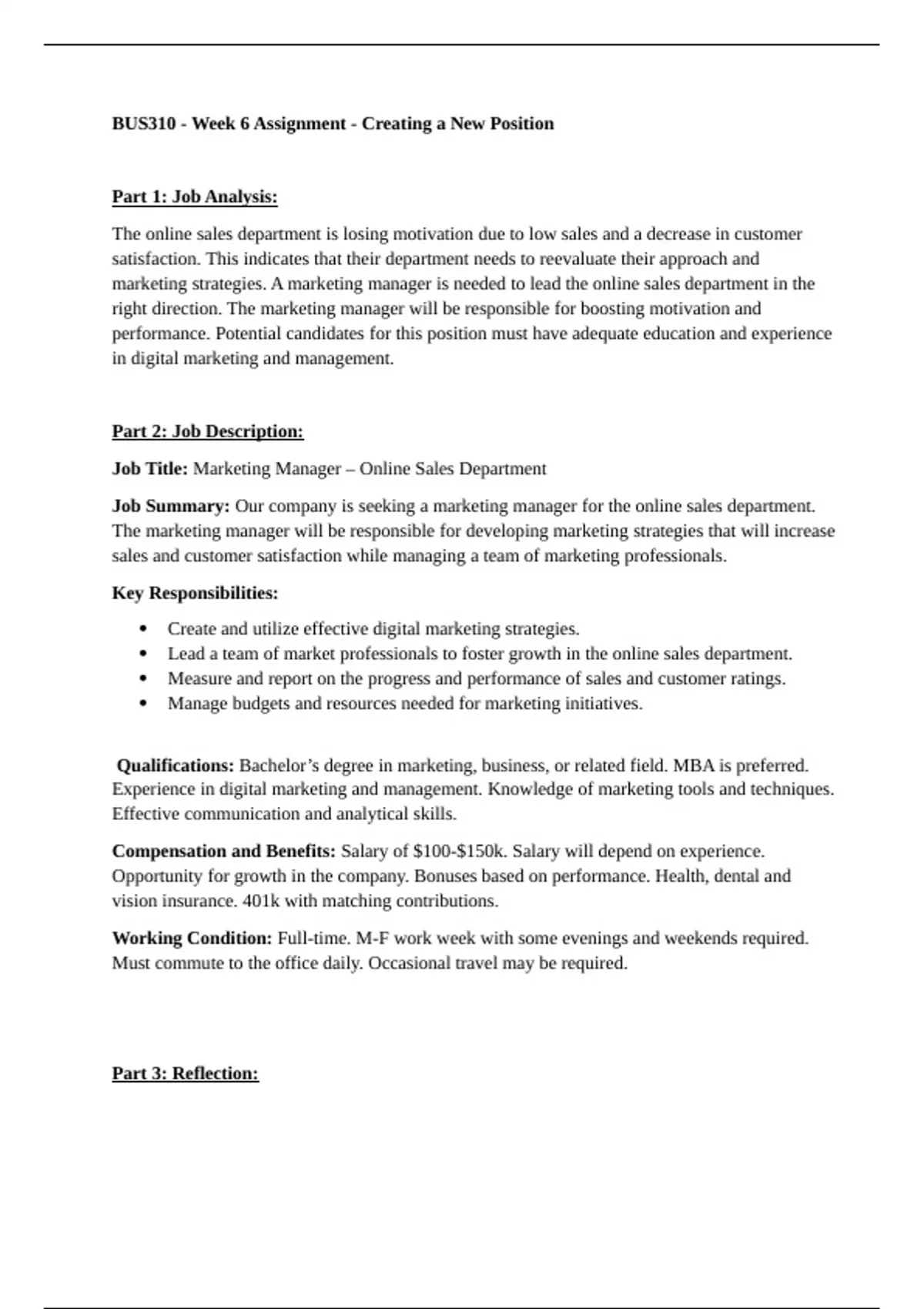 Job Summary: Our company is seeking a marketing manager for the online sales department.