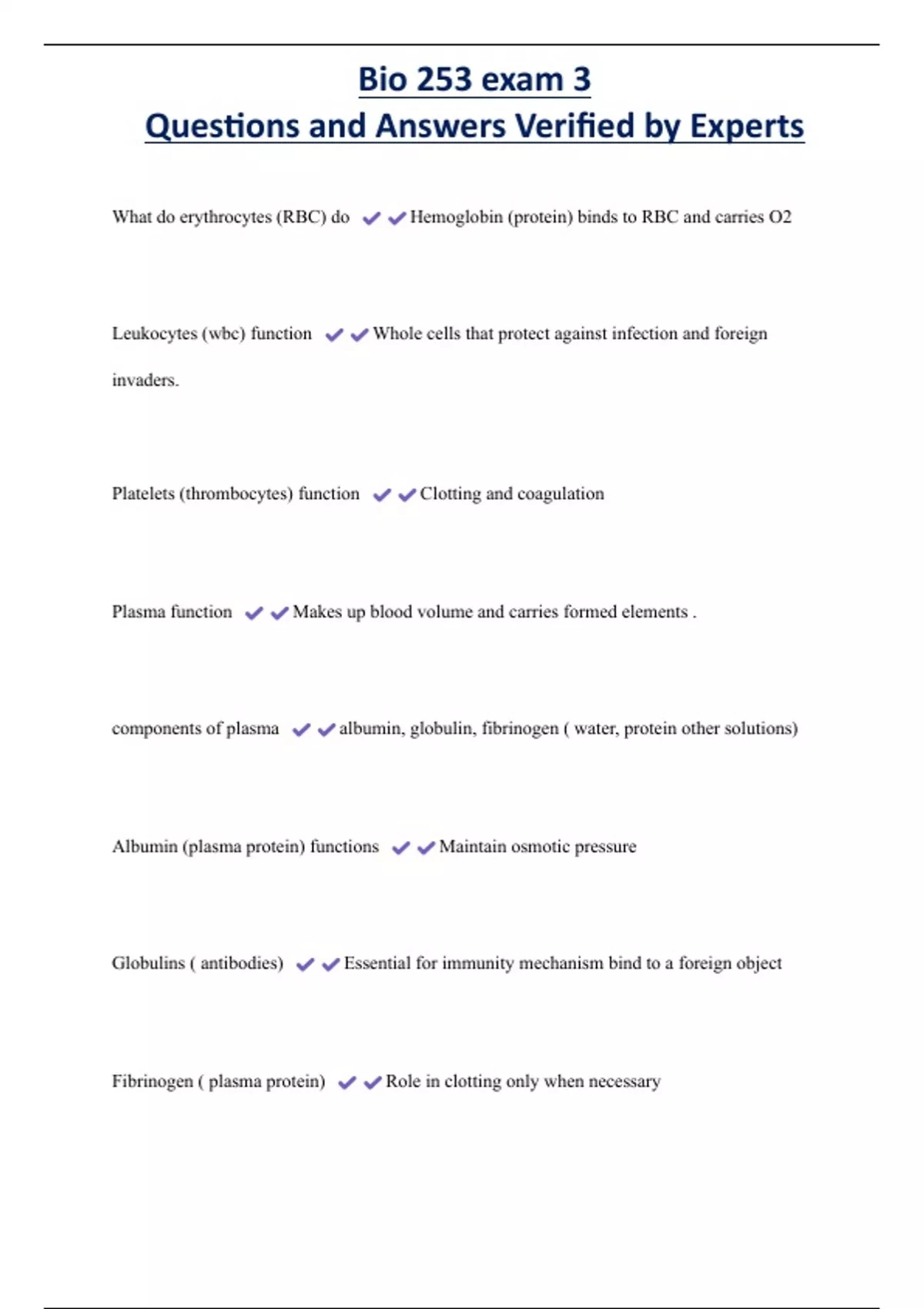 Bio 253 exam 3 Questions and Answers Verified by Experts